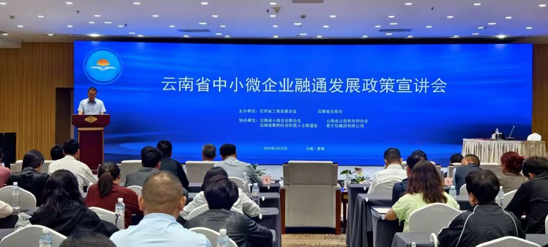 6月20日,由云南省工商联(总商会)主办,云南省小微企业联合会、云南省注册税务师协会、云南省新的社会阶层人士联谊会、爱尔信集团有限公司协办的“2025中小微企业融通发展政策宣讲会”在昆明举行。活动旨在深入贯彻党中央、国务院和云南省委省政府关于支持中小微企业健康稳定发展的决策部署,贯彻落实习近平总书记考察云南重要讲话精神,落实好“一起益企”和中小微企业活动月工作要求,进一步激发中小微企业的创新活力和发展动力,助力营商环境优化提升。云南省工商联党组成员、副主席康劲出席并致辞。有关商(协)会、中小微企业负责人,小微企业工作委员会在昆副主任,以及省工商联、省委统战部、省科技厅有关处(室)负责人140余人参加活动。昆明市会泽商会及会员企业云南麟畅财务管理有限公司、云南利蓬商贸有限公司应邀参加活动。