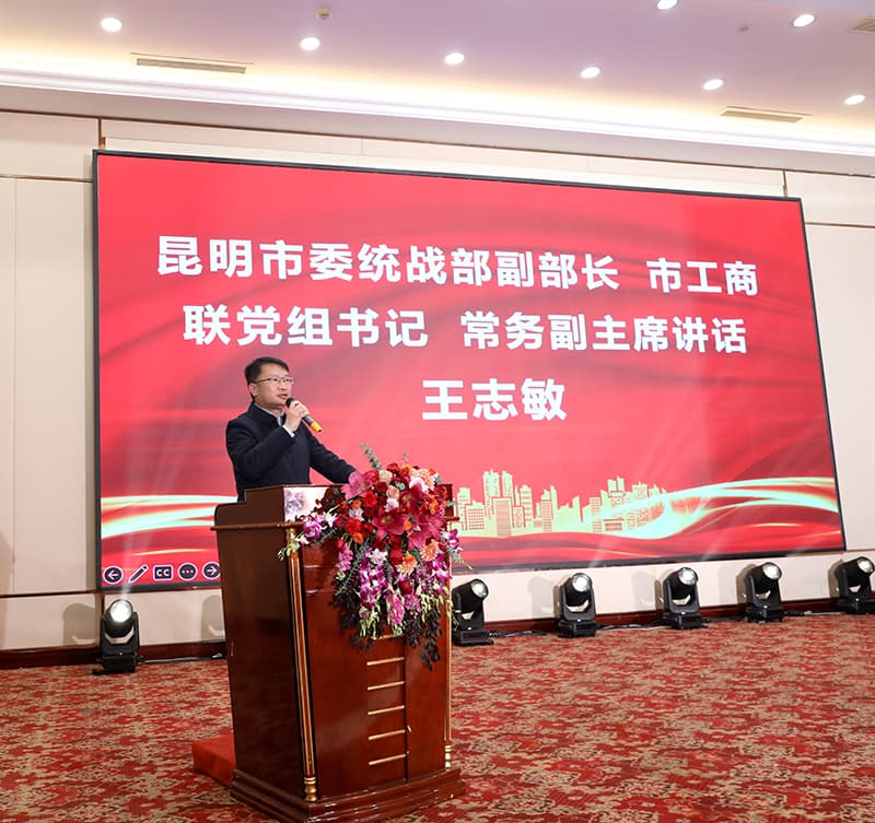 昆明市委统战部副部长、市工商联党组书记、常务副主席王志敏代表昆明市委统战部、市工商联,对内江商会及全体内江籍企业家为昆明市经济社会发展所作出的突出贡献表示衷心感谢,并致以新春的问候。结合丙午马年的象征意义,以“马的精神”深情寄语广大内江籍企业家。将马的精神概括为“忠诚坚毅、吃苦耐劳、勇往直前、不达目的不罢休”,并以此与企业家精神相融合,提出了殷切期望:一要胸怀“忠诚坚毅”之志。 二要保有“吃苦耐劳”之风,。三要激扬“勇往直前”之锐。四要坚定“不达目的不罢休”的韧劲。