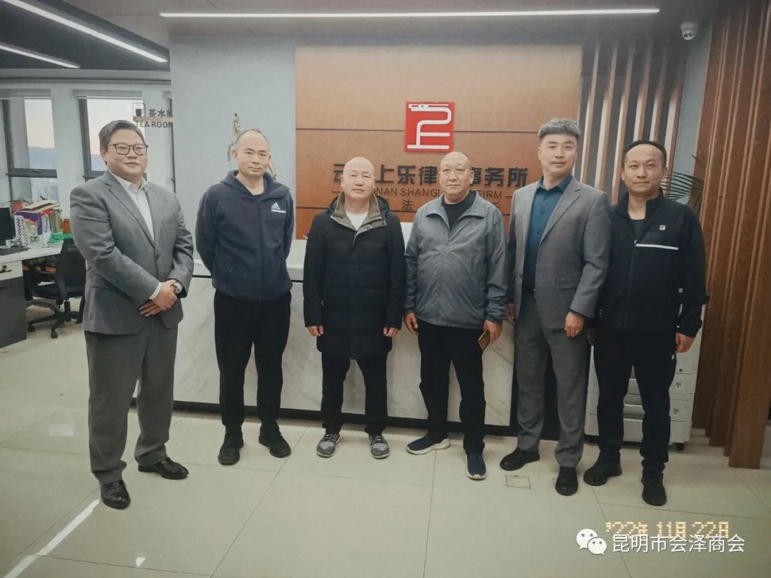 为了了解会员企业的发展状况,倾听会员企业心声,加强会员企业之间的沟通交流合作,充分发挥商会桥梁纽带作用,为促进会员企业之间搭建合作、共赢、互惠互利的沟通交流平台,进一步提升商会为会员企业的服务质量,2022年11月22日下午,商会执行会长解开平,商会轮值领导唐朝稳副会长、秘书长马鹏、商会党支部书记罗兴志一行4人赴商会会员单位:云南上乐律师事务所走访学习,并进行座谈交流。