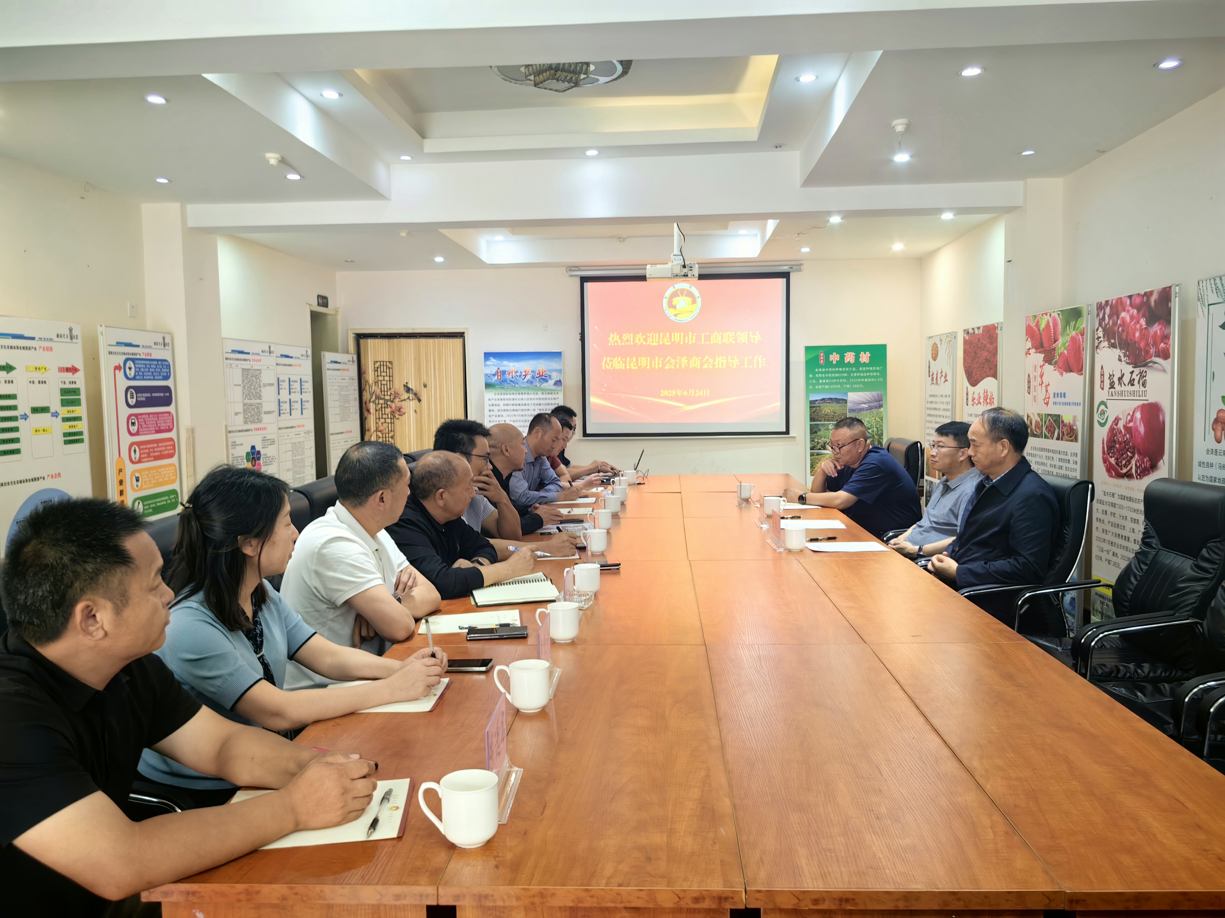 6月24日,昆明市工商联党组书记王志敏、秘书长罗春元、四级调研员代启文一行深入昆明市会泽商会,倾听商会发展的心声,了解商会发展现状,解读商会发展的新途径,助力商会会员企业转换发展新赛道,为商会及会员企业的高质量发展赋能,共同绘制商会高质量发展的新蓝图。