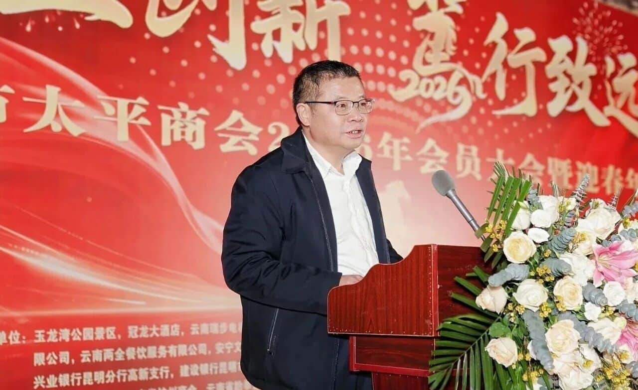 昆明市会泽商会受邀参加安宁市太平商会2026年会员大会暨迎春晚会 2月4日,以“守正创新,笃行致远”为主题的安宁市太平商会2026年会员大会暨迎新春年会在太平玉龙湾公园景区顺利召开。云南省工商联党组成员、副主席岳黎松,省工商联组织建设处处长陈和军,昆明市工商联、安宁市工商联、西山区工商联等相关负责人,以及昆明市会泽商会等32家友好商会与合作单位代表共同出席,见证商会年度盛事。