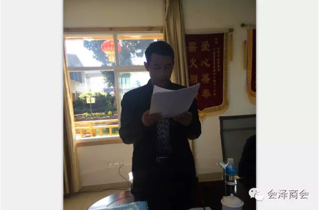 2014年11月28日下午,昆明市会泽商会党支部在商会会议室召开党员发展大会,党支部书记罗兴志,组织委员王顺云,纪检委员保佑章,宣传委员宁伯明,党员肖志明,预备党员张华友,预备党员发展对象徐琳、吴红梅等参加会议。会泽驻昆党工委书记王英出席会议。本次会议由商会党支部书记罗兴志主持。
