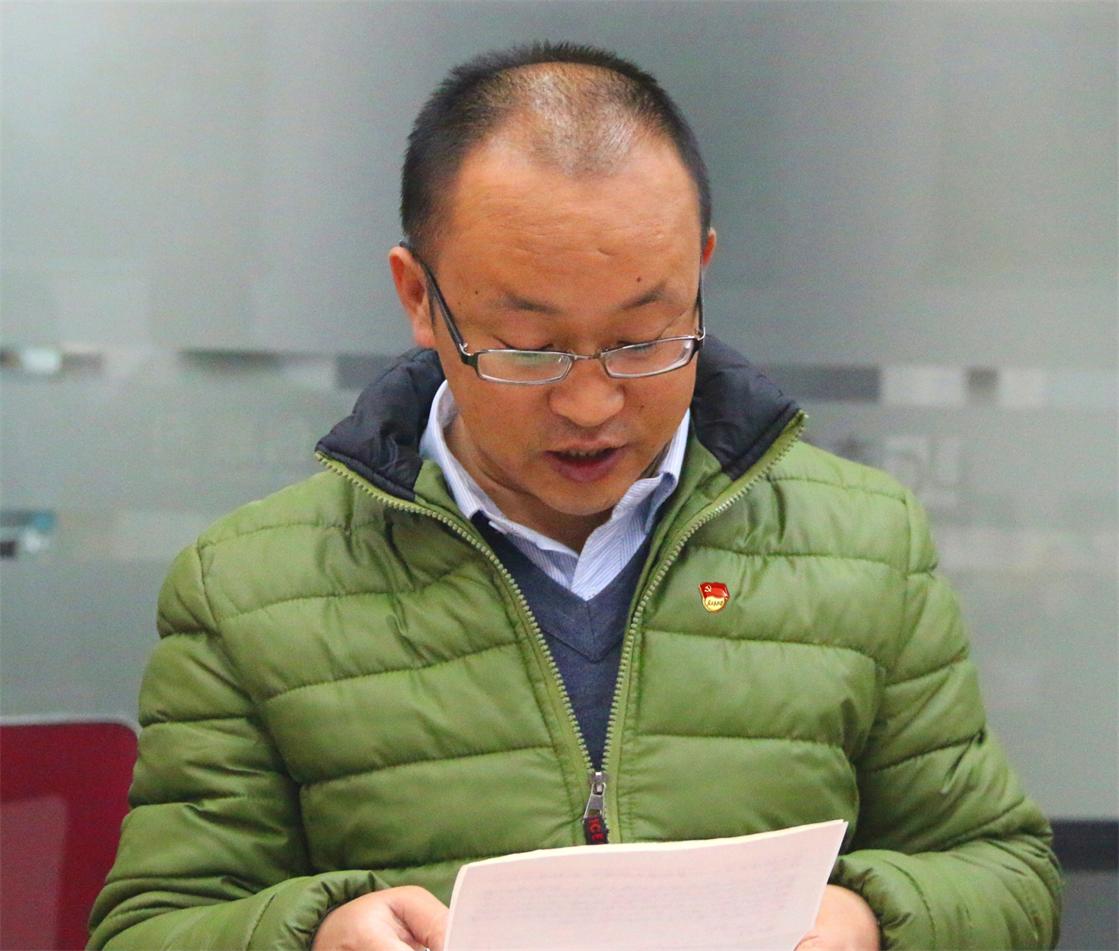 王开德同志宣读转正申请 金友才同志宣读转正申请 会上,党支部书记罗兴志对与会全体党员提出了三点要求:一是充分认识到学习贯彻党的十八届三中、四中、五中全会精神的重要性;二是充分认识到加强商会党组织建设的重要意义;三是充分认识到共产党员荣誉感,并弘扬积极向上的正能量。 最后,县人社局昆明工作站徐天涛书记作了重要讲话。对今天王开德、金友才同志转为正式党员表示祝贺,并希望两位同志以今天为新的起点,更加的严格要求自己,努力学习党的基本理论和基础知识,增强党员意识,在工作中勇挑重担,起模范带头作用。对商会党支部工作给予了充分肯定,并对党支部建设提出几点要求:一是加强政治理论学习,组织党员认真学习党章党规,要高起点自觉约束自己的学习行为,关心政治,注意党员形象。二是牢记入党誓言。不忘党的宗旨,增强党的群众观念;不忘自己党员的身份,永保党员的本色。三是在企业经营中发挥党员的核心作用。把实现自我价值与做好企业经营结合起来;把发展企业回报社会与提高党员的形象、威信、地位结合起来。四是按照有理想、有道德、有纪律、有文化的四有标准,做到有自己的人格魅力,带头维护社会公德,遵守职业道德,弘扬美德,诚实守信,热心助人。五是协调好劳资关系,化解内部矛盾,及时了解员工思想动态,加强员工的联系与沟通,预防和化解企业中出现的一些内部矛盾。最后是党支部活动要与商会工作结合起来,参与到商会工作中去。
