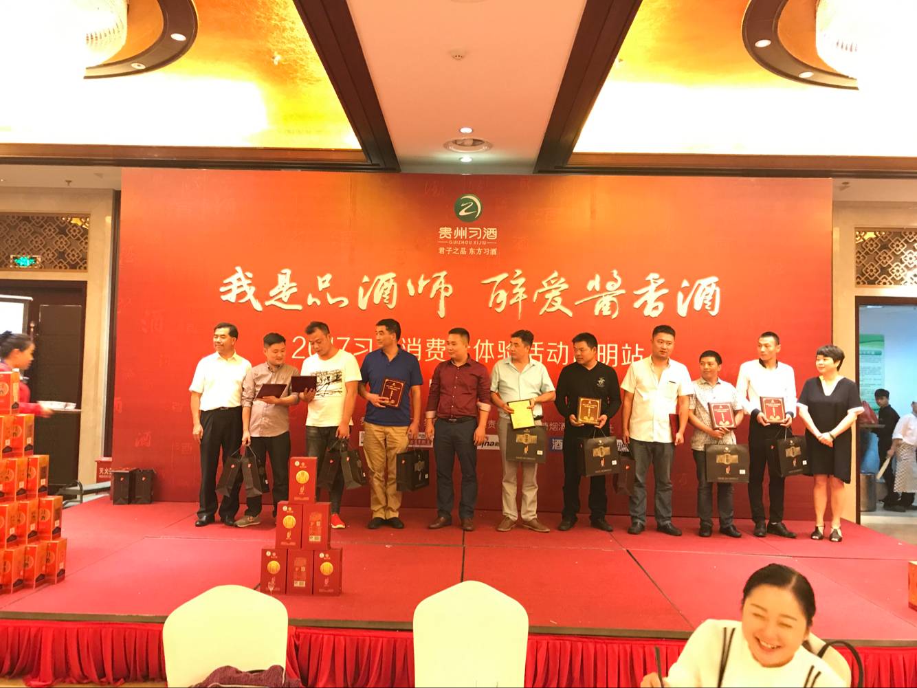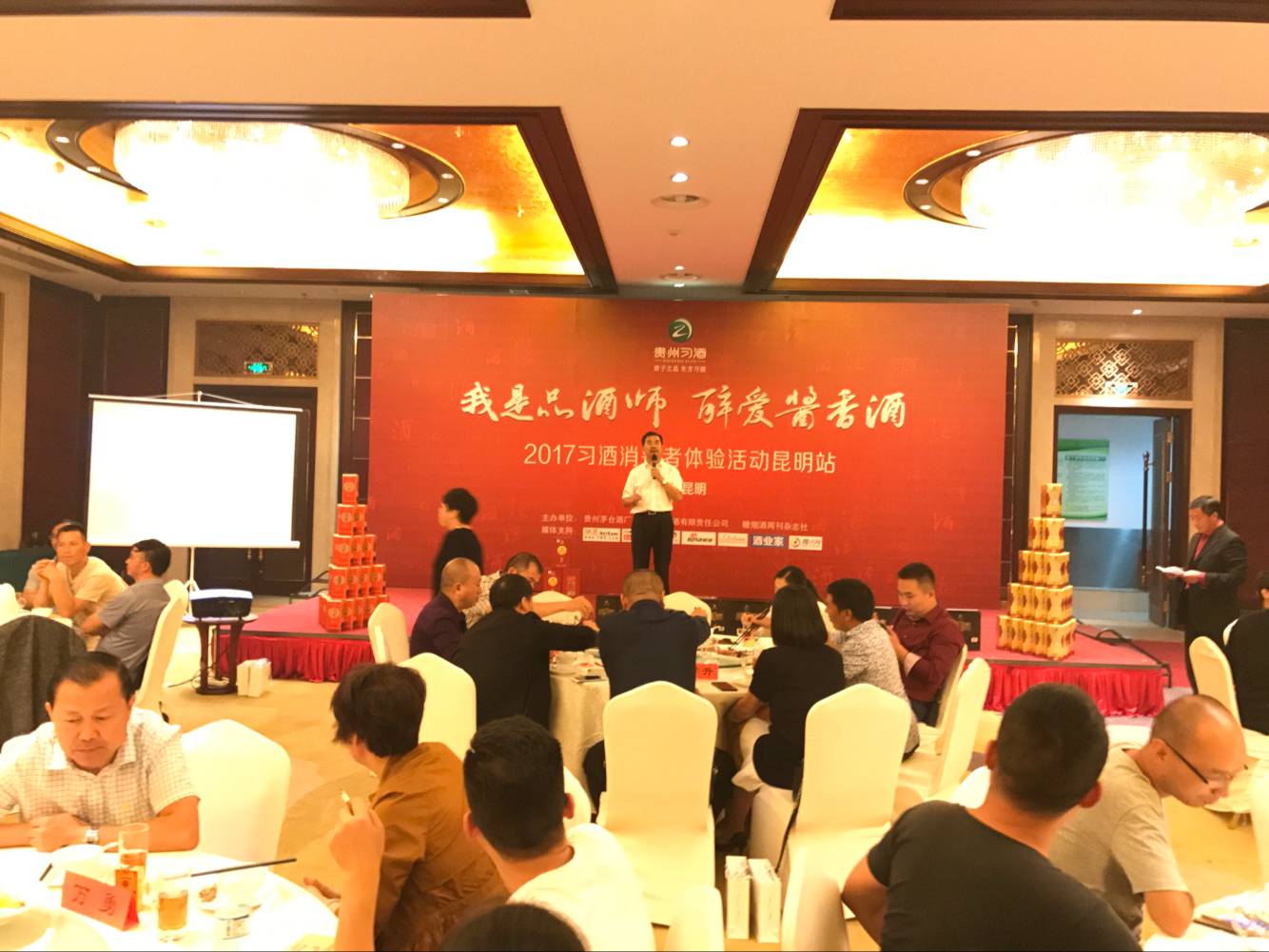 9月24日下午4点30分,“我是品酒师·醉爱酱香酒”习酒全国消费者体验活动在昆明阳光大酒店隆重举行。本次活动由贵州茅台酒厂(集团)习酒有限责任公司主办,昆明市会泽商会理事单位昆明水淼商贸有限公司承办。 昆明市会泽商会常务副会长陆加万、监事会副主席杨从元,监事何兴明,理事普南坤、施明华,常务副秘书长马鹏,办公室主任罗兴志及昆明水淼商贸有限公司客户共100余人参加本次活动。 习酒公司《中国酱酒鉴赏》主题演讲,从饮酒小常识、白酒基础知识、酱酒与健康、白酒鉴赏等几个方面作了生动的演说。