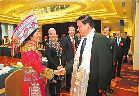 18日下午,刘云山同志参加云南省代表团同代表们一起讨论报告。
