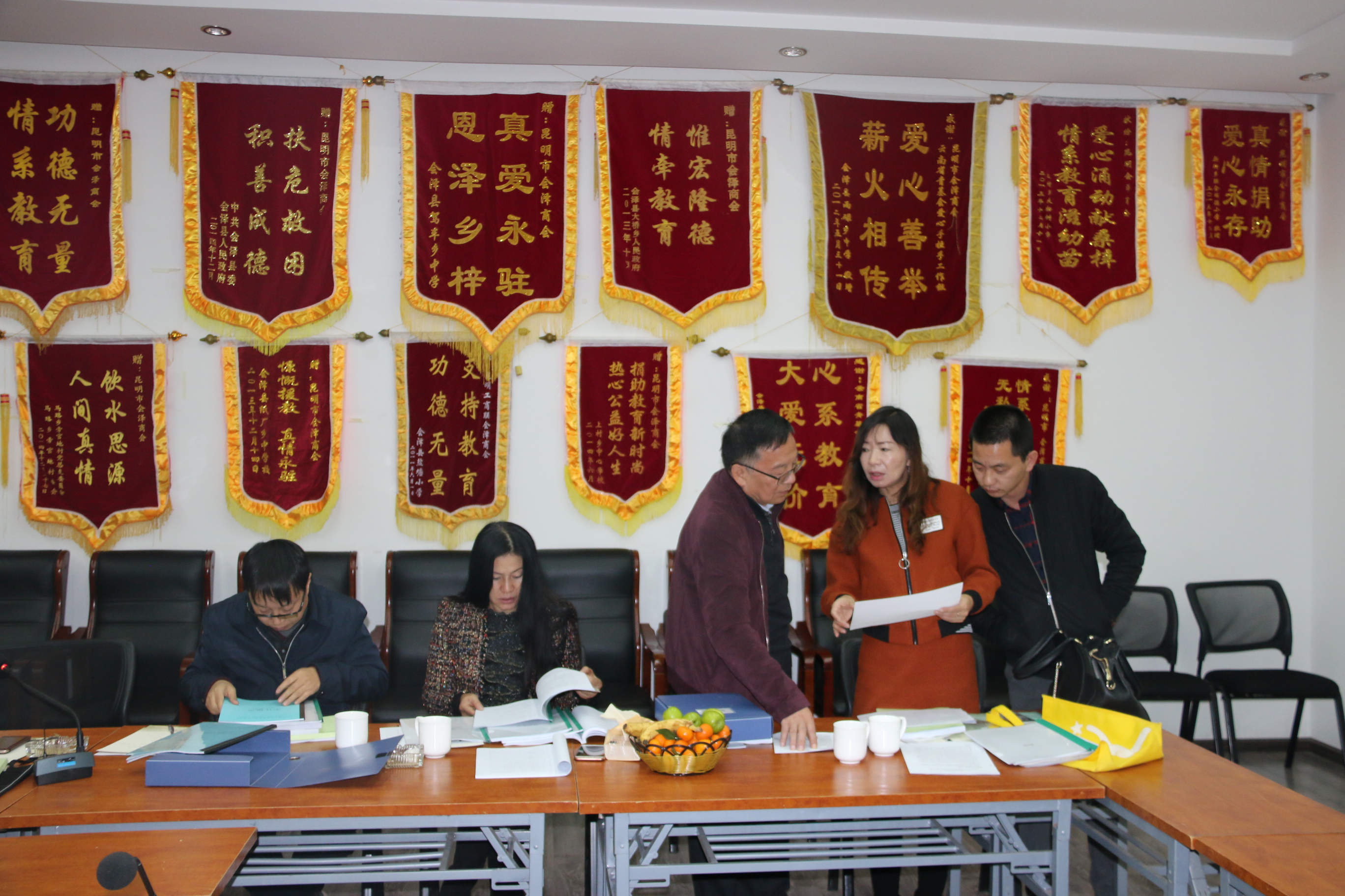 专家探讨评分 商会按照昆民民通〔2017〕75号《昆明市民政局关于开展2017年 社会组织评估工作有关问题的通知》要求,办公室认真细致准备 装订评估资料和现场汇报材料。