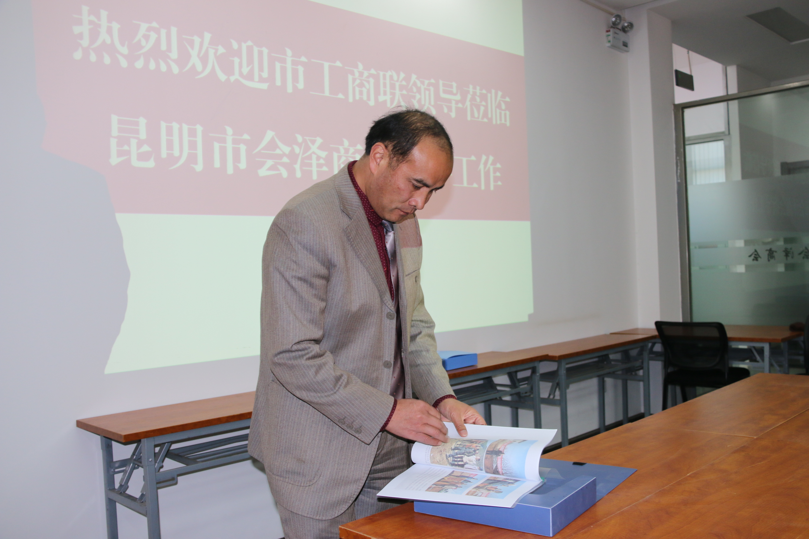 1月23日上午,昆明市工商联党组成员、副主席、昆明市商协会党委书记訾贵金同志,率宣教处处长许林华同志、扶贫处处长余志同志到昆明市会泽商会“四好商会”建设工作进行考评。