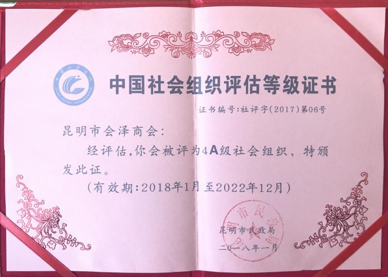 商会新闻| 昆明市会泽商会荣获昆明市4A级社会组织 |